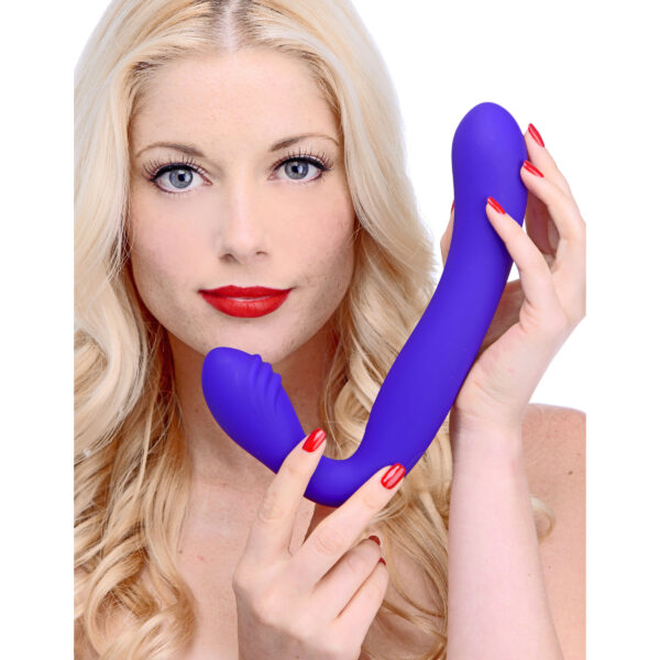 This hands-free strap on dildo is designed to slip into place and allow you natural, unencumbered penetration of your partner. Now there will be nothing between you but your firm shaft. The hard material will not bend or flex, holding its shape even during the most rigorous of pounding. The textured inner bulb will provide the wearer additional stimulation, for dual pleasure. This vibrating pleasure tool is designed to be charged via a discreet USB port, which stays covered until it is needed. Just plug the cord into any USB outlet to charge, then enjoy the deep, powerful, throbbing vibration, wire-free! It has 30 different vibration modes, for a nearly endless supply of choices.